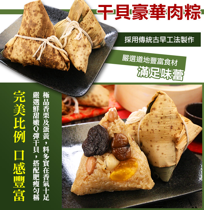 早鳥優惠【海鮮王】千禧干貝豪華肉粽5顆*2包 共-預購-豪華干貝還有嚴選香Q糯米,料多味美,口感紮實,這就是家鄉古早味傳統味道!吃下去的每一口都是驚艷!團購首家承諾24小時到貨!17Life給您又快又 售價:59